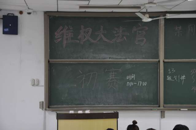 3月18日下午三点,院青协维权中心在博一A区举办了维权大法官初赛。比赛开始之前,工作人员完成了对现场的安排工作。下午三点左右,参赛人员到达教室并按照自己的组号入座。3点10分,工作人员发放答题卷,比赛正式开始。同时,本次比赛也严格要求参赛选手们,严令禁止参赛者使用手机,并且由工作人员巡视。本次比赛以维权知识为主题,以笔试形式来抉择出获胜的队伍。在所有队伍将试卷提交后,工作人员在教室里批改试卷并打分,最终评定获胜队伍,这些队伍将会进入决赛。最后,工作人员收拾并打扫教室,维权大法官初赛正式结束。