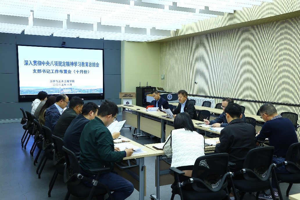 10月14日下午,力土学院在B201会议室召开深入贯彻中央八项规定精神学习教育总结会暨集体学习会。会议由院党委书记马占国主持,院党委委员及教职工党支部书记参加会议。
