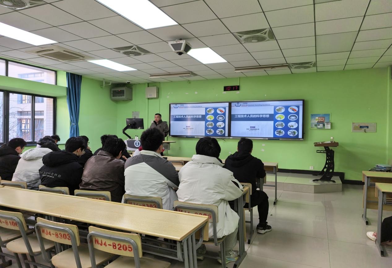 12月5日,学院开展“学术前沿,启迪人生——专家学者进课堂”系列讲座第十六讲暨Office Hour第十三期活动。中铁一局集团有限公司高工管德鹏走进2022级岩土与矿山工程专业本科生班,并作题为《工程技术人员的科学思想》的学科前沿讲座。讲座由学院党委副书记纪承主持。