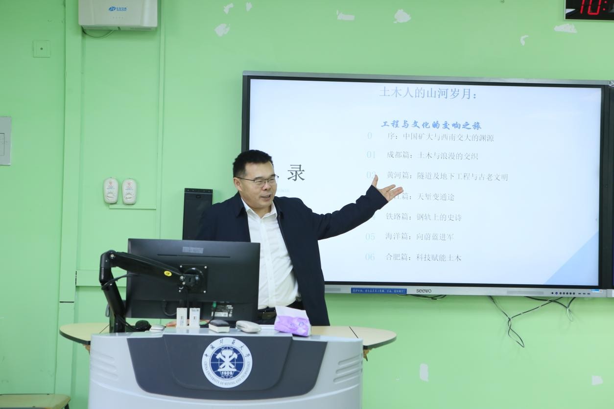11月21日,学院开展“学术前沿,启迪人生——专家学者进课堂”系列讲座第十二讲暨Office Hour第九期活动。中铁四局高级专家申志军走进2022级岩土与矿山工程专业本科生班,并作题为《土木人的山河岁月-工程与文化的交响之旅》的学科前沿讲座。讲座由学院党委副书记纪承主持。
