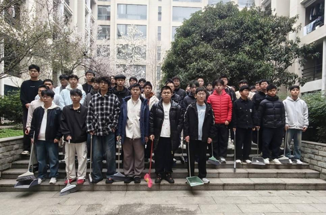 4月3日,志愿者们再次走进桃三宿舍楼区和博五公教区,开展清扫与设施维护活动。在桃三区域,志愿者细致清扫走廊与台阶,清理垃圾与污渍;在博五公教区,大家认真清理设备表面污渍,巡检智能设施运行状态。志愿者们分工协作,以实际行动守护校园环境,将志愿服务融入日常、化作经常。