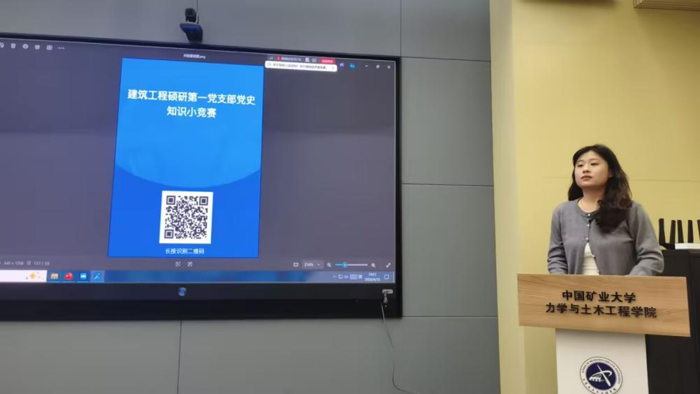 4月15日晚,我院建筑工程硕研第一党支部在学院楼B201举办“一支部一品牌”系列活动之党史知识竞赛。活动旨在通过对党员同学进行中国共产党历史知识的考查,来巩固深化支部党员党史学习成果。