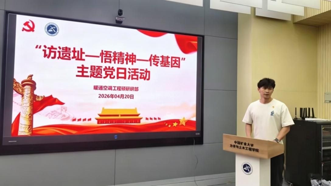 4 月 20 日,暖通硕研党支部在力土学院楼 B201 举办 “红色遗址研学暨学习心得分享” 主题活动。活动由党员代表分享四处红色遗址研学感悟,推动红色精神与学习、工作、生活深度融合,引导党员将思想感悟转化为行动动力,树立正确价值观,强化责任担当。学院党委副书记纪承参加活动。